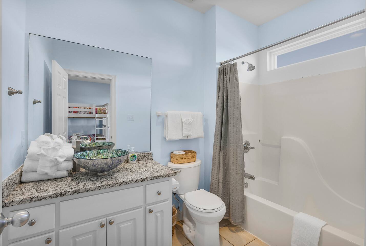 Charming Beach House in Morgantown, Gulf Shores Welcome to your perfect beach getaway! This newly remodeled, cozy 3-bedroom, 3-bathroom beach house is located just steps away from the beautiful Gulf Shores beach, offering the ideal retreat for families or multiple families. With sleeping space for up to 11 guests, the home features two luxurious king beds and a fun, spacious bunk room with two full beds and a twin trundle. A queen sofa sleeper is located in the living area for added flexibility. Enjoy the convenience of high-speed Wi-Fi throughout, allowing you to stay connected while you unwind. Streaming on all TV’s (including the bedrooms) is available as well as cable in the main room. The house is also complemented by access to two beautiful community pools, offering a refreshing break after a fun-filled day at the beach. Plus, stay active with access to tennis, pickleball, and basketball courts. All within walking distance. Kiva Dunes Golf Course is also just 5 minutes away by car. There are two beach access points very close by. One is private and one is public with parking. The private beach access is just a short walk away, so you can easily enjoy the beach with the hassle of driving. If you prefer to drive, the public access is just as close and has roughly a dozen parking spots. This house is ideal for family vacations, group getaways, or multiple families, and will provide an unforgettable stay. This is a very quiet community that has a resort feel. No regrets here! SLEEPING ARRANGEMENTS FOR 11 - Bedroom 1: King Bed with En-Suite Bathroom - Bedroom 2: King Bed with En-Suite Bathroom - Bedroom 3: Full Bunk over Bunk Bed w/twin bed trundle. - Sofa Sleeper: Queen Bed All TVs have cable and Roku Streaming (bring your own password) KITCHEN - Fully equipped with fridge, microwave, dishwasher, and oven/stove. - Small appliances: toaster, crock pot, and drip coffee - Plenty of pots, pans, plates, and bowls for all cooking needs LAUNDRY - Washer and dryer located within the house-laundry pods and dryer balls are provided. LIVING/DINING ROOM - Two couches and ample seating for allLoveseat for plenty of seating. - Dining table seats 10-11 people - TV has cable and Roku Streaming (bring your own password) - Assorted games BEACH SUPPLIES - Beach cart - Several chairs - Umbrella - Boogie board - Beach toys LOCATION 5 minutes to Kiva Dunes Golf Course 10 minutes to Fort Morgan 20 minutes from Gulf Shores Airport (Allegiant starting in late May 2025) 80 minutes from Pensacola Airport